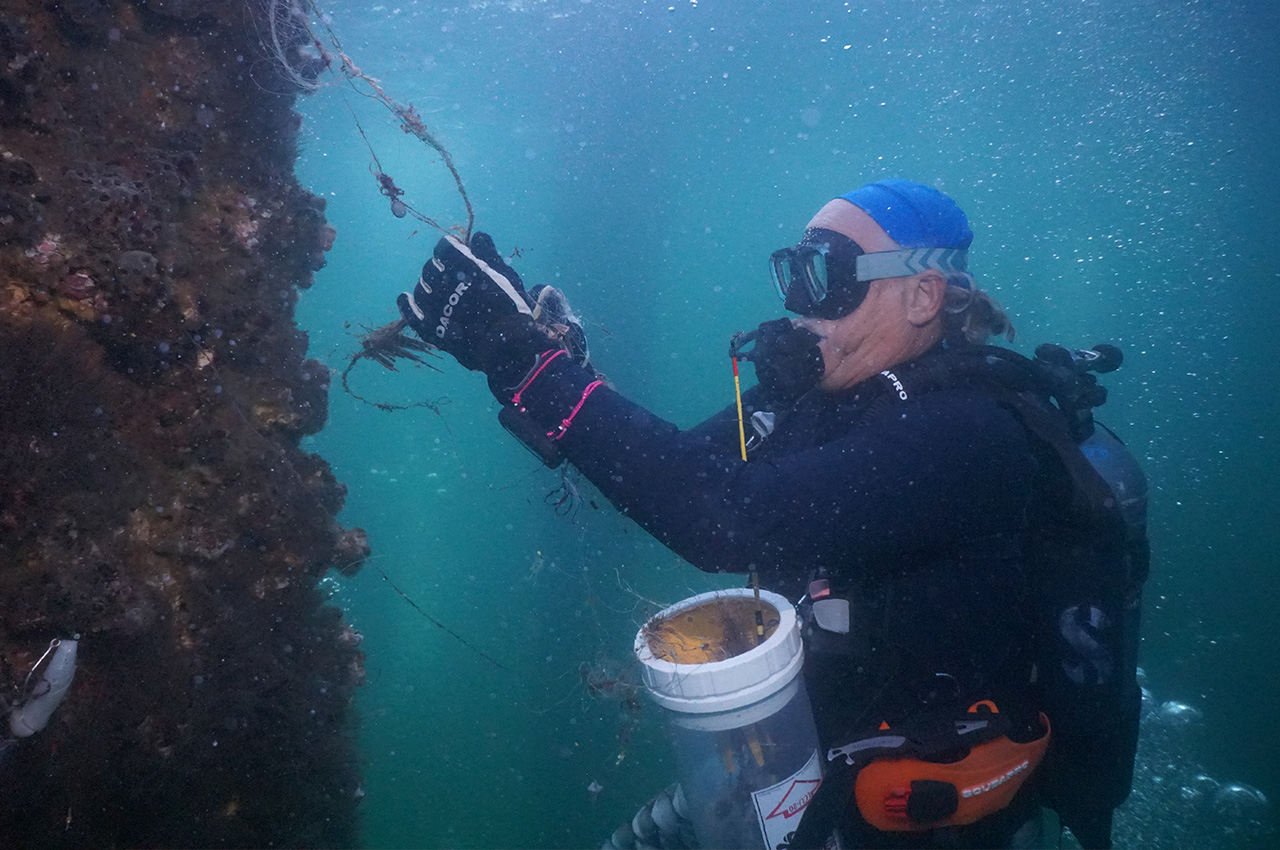Divers focused much of their efforts around the pier pilings, removing fishing line, lures and other fishing equipment that had become wrapped around the structures. Among the debris collected were multiple fishing rods and a metal piece of roofing.