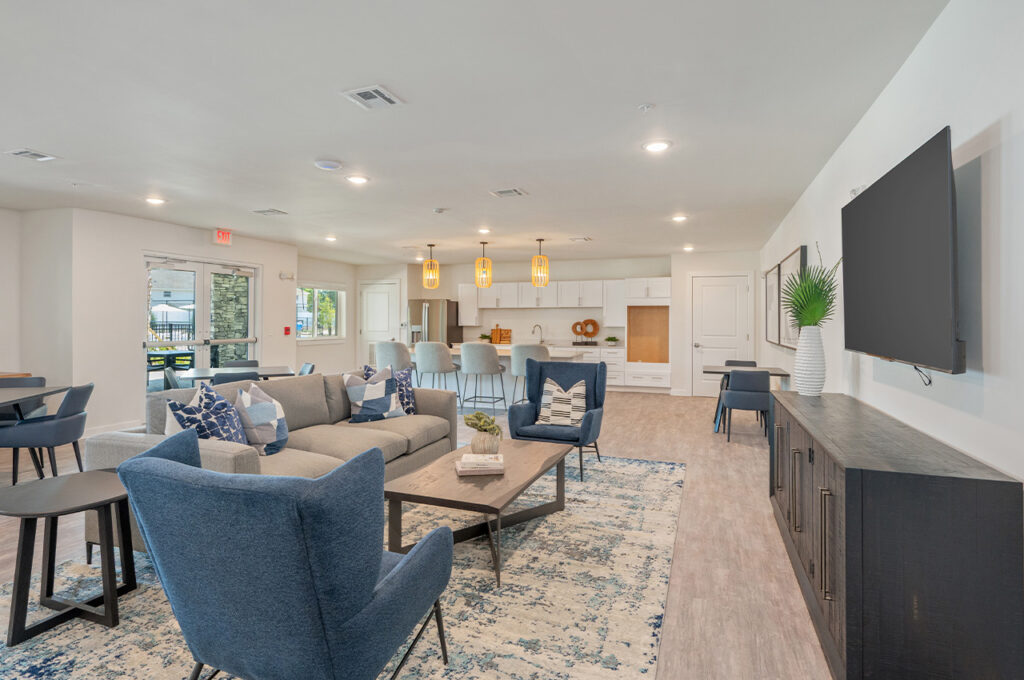 Princeton Grove amenities include a clubhouse, resort-style swimming pool, fitness center, pickleball court, dog park, theater room and clubroom with computer stations. Individual apartments feature Energy Star appliances and granite countertops. The property is National Green Building Standard certified.