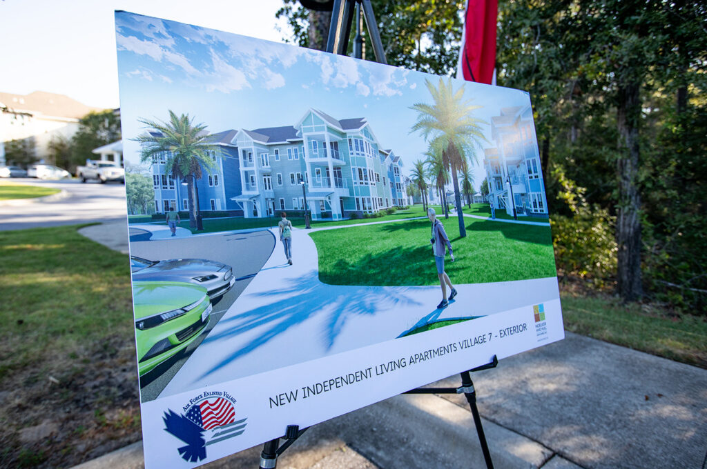 “It’s a big day today for us. But we’ve had many big days in the past,” said CMSgt Brooke McLean, USAF retired, president and CEO of the Air Force Enlisted Village. He noted the organization held groundbreakings for Village 5 about 12 years ago and Village 6 seven years ago.