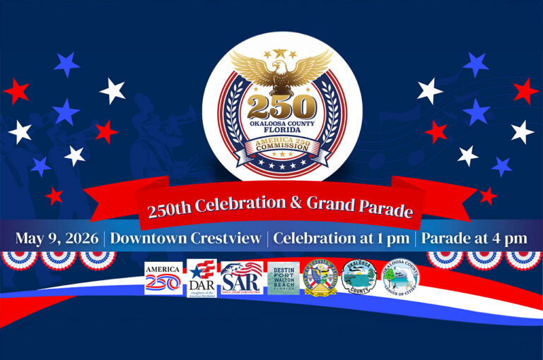 The Okaloosa County America 250 Commission was founded by resolution of the Okaloosa County Board of County Commissioners on Jan. 20, 2026, to support efforts to provide meaningful activities to the citizens and visitors of Okaloosa County throughout the 2026 calendar year to celebrate the founding of the United States of America, designated as the “America 250 Celebration Year.”