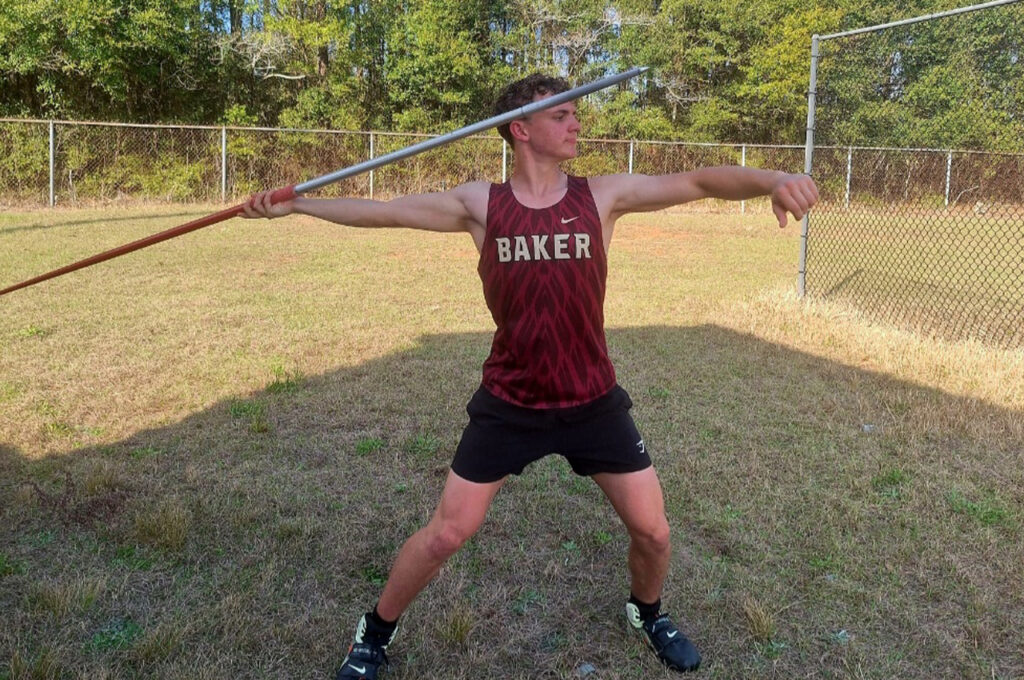 Sloan’s path to javelin wasn’t one he planned. A multi-sport athlete who played baseball for nine years and suited up for Baker’s basketball team this past season, he was encouraged to try javelin as a freshman by throwing coach Dustin Oglesby, who thought his baseball arm would translate. Sloan picked it up about a month before the season and hasn’t looked back.