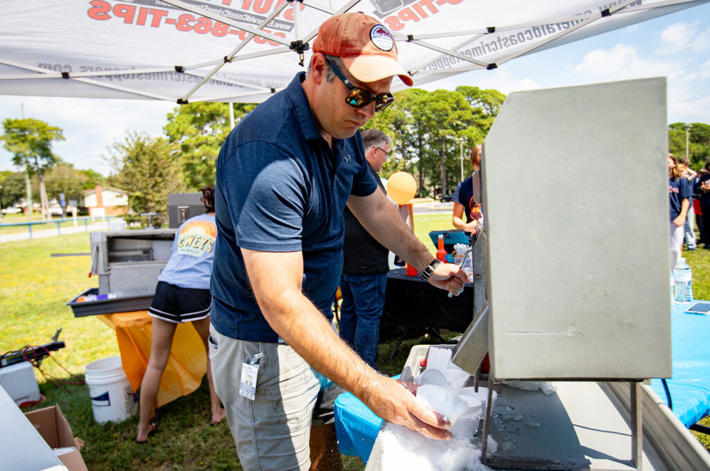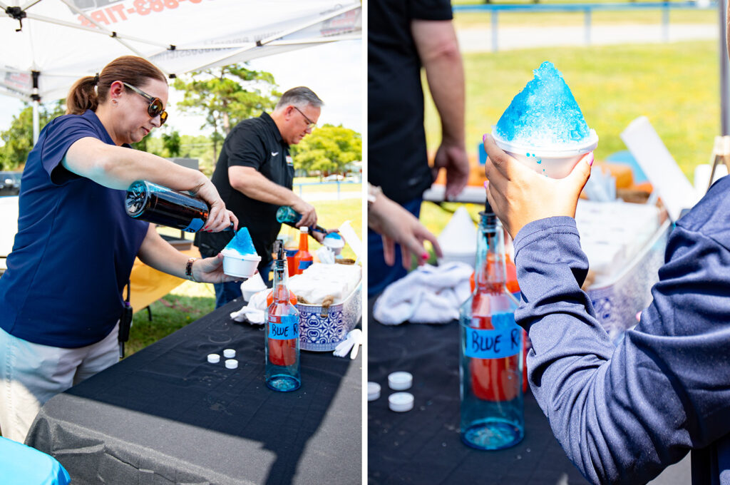The team served 650 snowballs to students who could choose between orange and blue raspberry flavors representing the school’s Spartan colors. Fellow school board member Tim Bryant and Principal Heather Williams joined Destin in handing out the treats.
