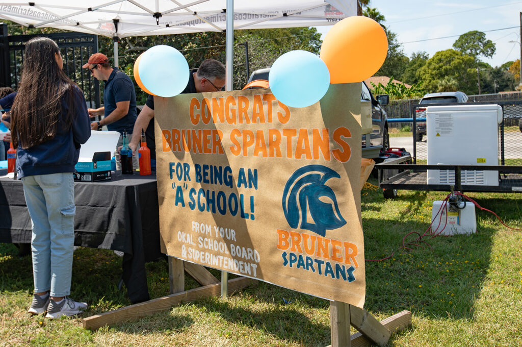 “Bruner’s A rating is a testament to the hard work and commitment of students, teachers, staff, and administrators,” Chambers said. “This recognition reflects the high standards we hold as a district and our shared belief in continuous improvement. I’m proud of Bruner and grateful for everyone who made this achievement possible, and a special thank you to School Board Member Parker Destin for celebrating with our students, staff, and administrators by treating them to snow cones.”