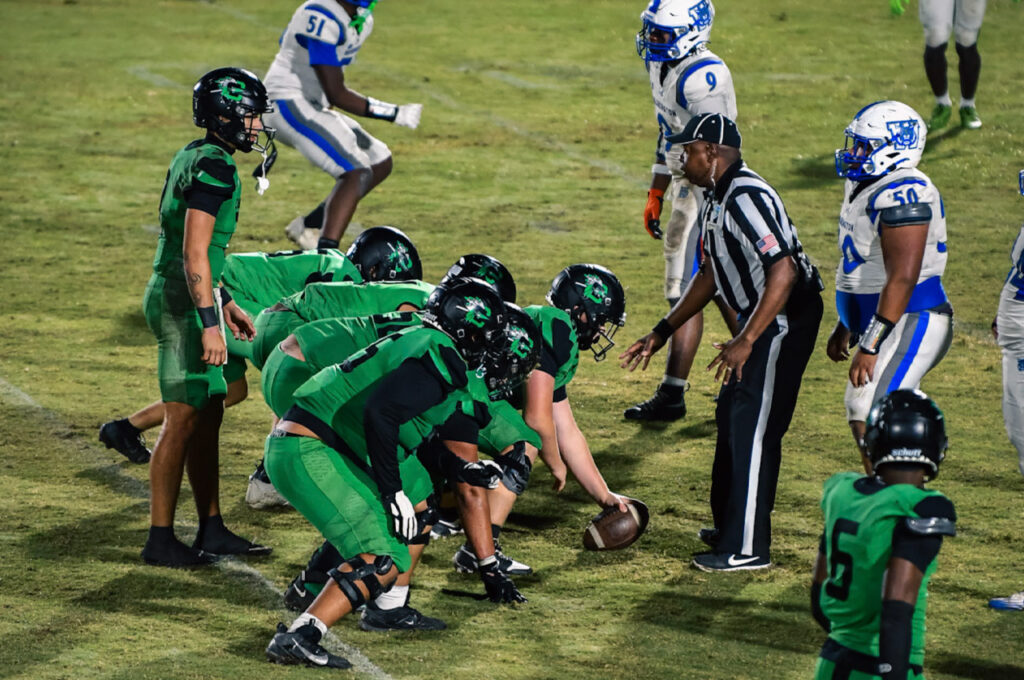 Ponte Vedra opened the scoring with a field goal, but Niceville answered when linebacker Clay Nelson intercepted Sharks quarterback Cole Rosendahl, setting up a touchdown pass from Deegan McCoy to receiver Robert Oliver. The Sharks regained the lead before halftime when Rosendahl connected with receiver Jack Belquist following a McCoy interception by Ponte Vedra linebacker Talan Babin. The Sharks led 10-7 at the break.