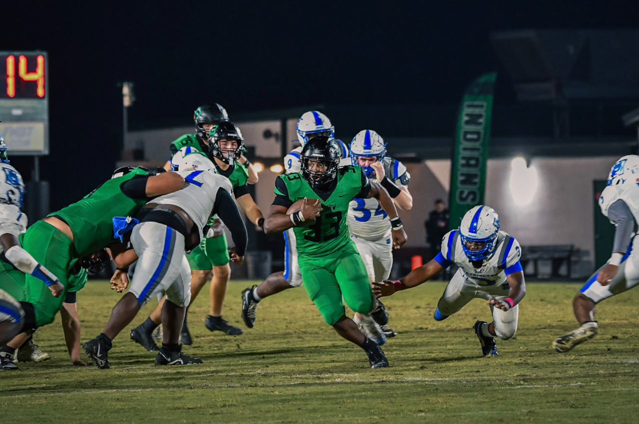 - The Indians led 28-6 at halftime, powered by two touchdowns from quarterback Zabetakis—one rushing and one passing to DJ Spence. Zion Legree added a rushing touchdown. Washington got on the board in the second quarter when Osborn capped a long drive with a quarterback sneak.