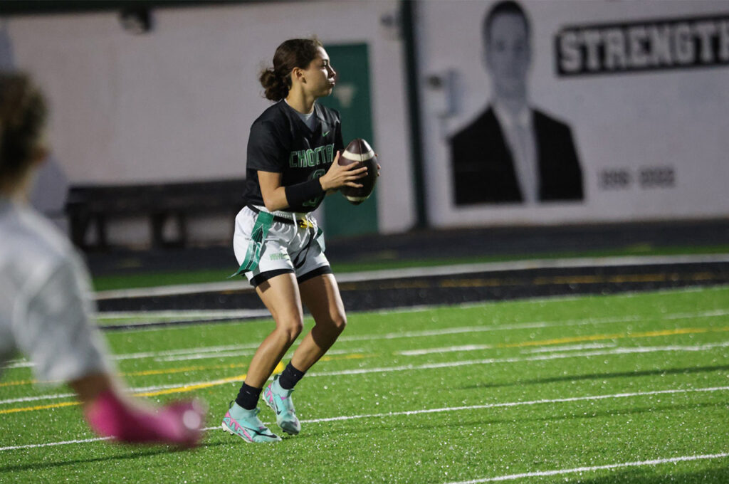 Choctaw’s offense struggled to get going in its first possession. Morales found Peyton DiBennedetto, but the pass was dropped. A short completion to Tishelle Bowles wasn’t enough, and another DiBennedetto drop forced a punt.