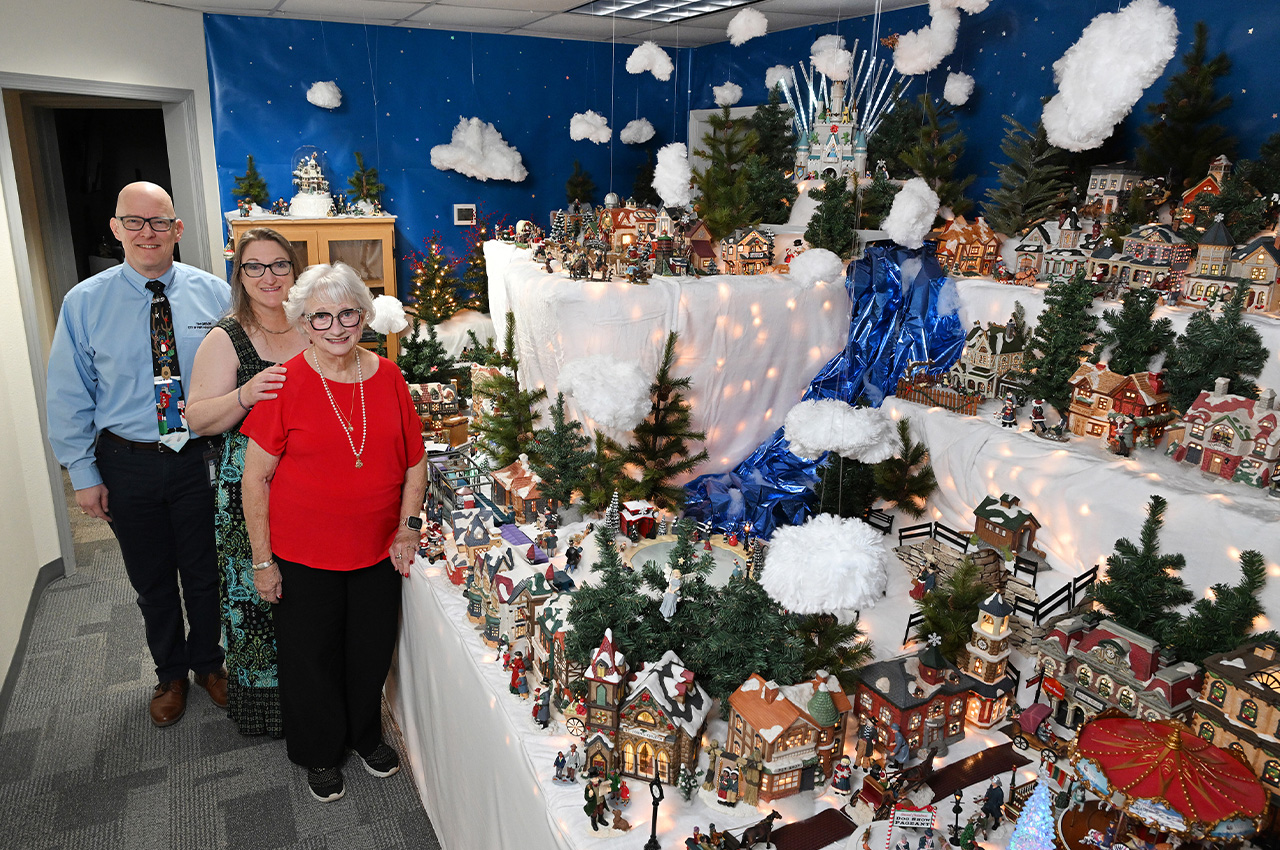 - Tim Gibson, the city’s growth management director, has transformed a vacant office off the Growth Management Department lobby into an elaborate Christmas village display featuring hundreds of buildings and figurines, a castle and a functioning railroad train.