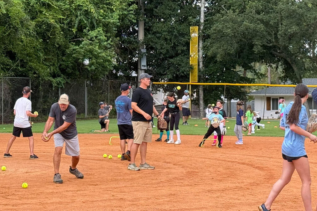 Brett Driver and Brandon Stricklin, both Destin natives, heard their girls asking for a place to play softball. What began as a simple conversation has grown into free weekly clinics that now draw more than 40 girls ages 4-12 to Dalton Threadgill Park every Monday at 5:30 p.m.