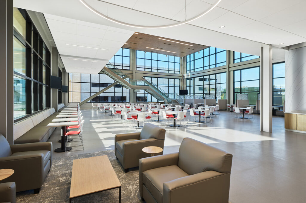The building houses a training center, an expanded call center with chat and text support, a Video Teller team, and departments including loan services, indirect lending, collections, Information Technology, Information Systems, mortgage services, and facilities management. The Operations Center can also serve as a disaster recovery site.
