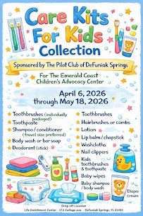 Join the DeFuniak Springs Pilot Club in collecting supplies for the Emerald Coast Children’s Advocacy Center.