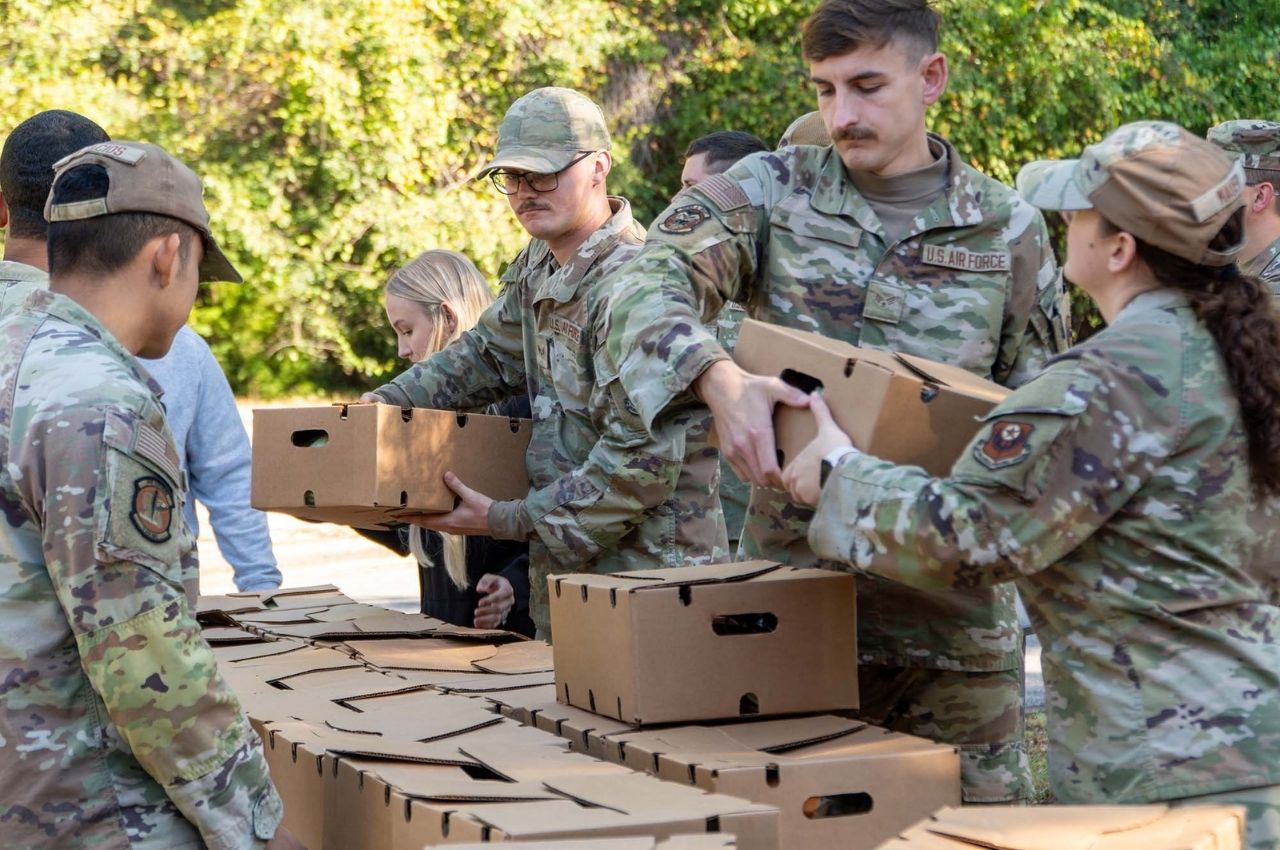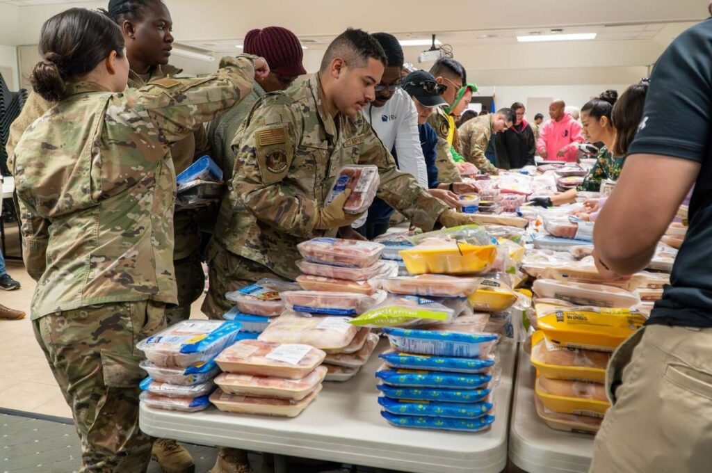 - Volunteers helped pack and distribute 5,000 pounds of food to active-duty service members and their families during the drive-through event.