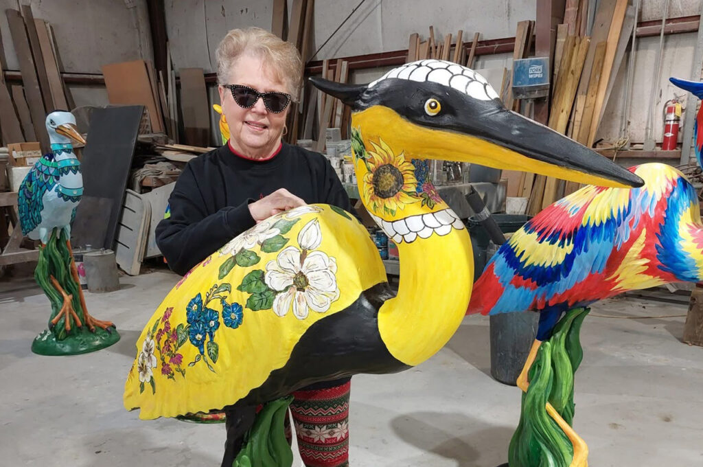 As a member of the Arts and Design Society and founder and board member of Okaloosa Public Arts — where she again served as president — Sims helped bring art to public spaces including the county administrative building and the Emerald Coast Herons.