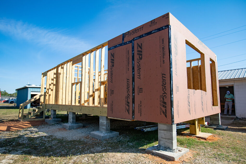 Students began foundation work last school year using pressure-treated lumber resistant to moisture damage. This fall, they’ve framed exterior and interior walls and begun installing brown ZIP board sheathing on the outside. The next phases include roof installation, windows, doors and siding, with completion targeted for the 2026-27 school year.