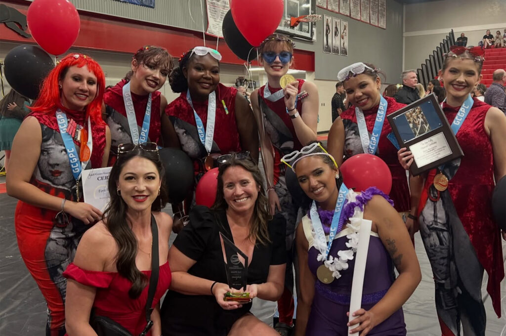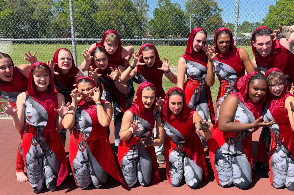 This season’s show, “A Cloak of Scarlet,” was a creative interpretation of Little Red Riding Hood designed by Conner Adams, a Crestview High School color guard alumnus who now works with winter guard programs across Texas. The team spent December and January building choreography, staging and performance quality before opening a competition schedule that ran from February through the end of March.