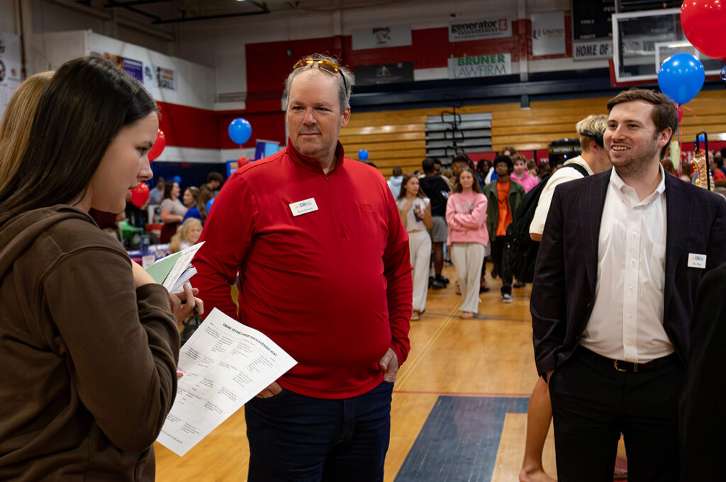 Dugan said the week leading up to the fair included career-themed dress-up days and classroom visits where counselors walked students through Xello, an online career exploration platform, to help them research companies and careers before arriving at the gym. A raffle encouraged engagement, with students completing questions after speaking with vendors and dropping entries into a box for prizes to be awarded Monday.