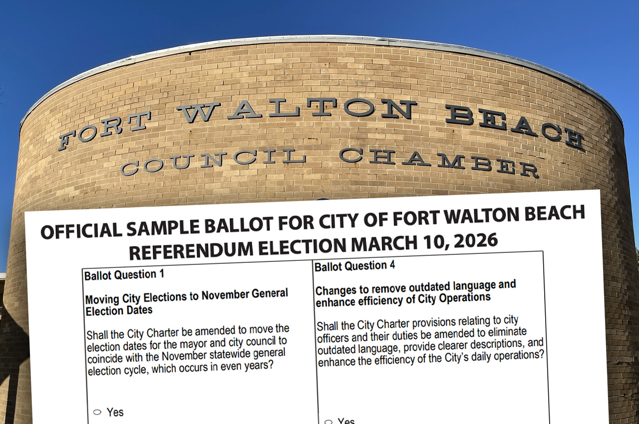 Full results for the remaining five questions are not yet available. A circuit court order, issued Feb. 27 at the request of the FWB Watch Group, prohibits the Supervisor of Elections from including Questions 2 through 6 in election night reporting or posting those results on the SOE website. The order also bars the Fort Walton Beach Canvassing Board from certifying those results until the litigation concludes, including all appeals.