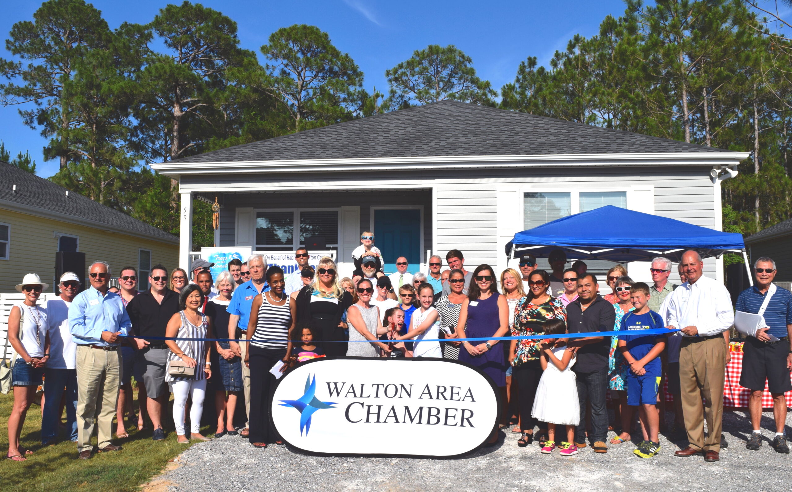 To conclude the ceremony a ribbon cutting was held with the Walton Area Chamber of Commerce, as well as a special housewarming gift from the non-profit organization Trees on the Coast: a crape myrtle tree in each of the family’s front yards – the only trees in their landscaping. The surprise was presented and planted by Trees on the Coast board members and Executive Director Allen French.