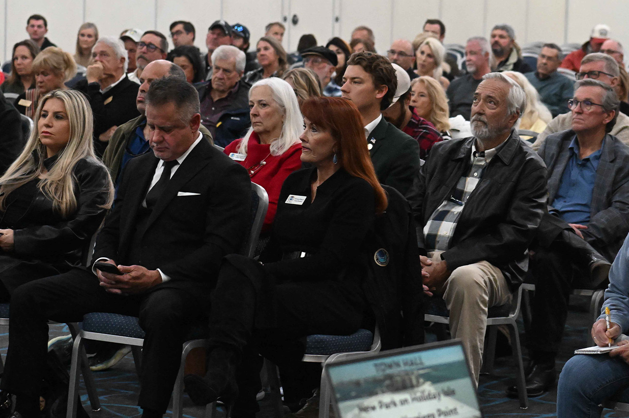 - Commissioner Drew Palmer, who represents the district, hosted the town hall and opened by outlining the timeline of how the project reached this point. He emphasized that the county was not involved in the acquisition itself but was asked by the state to manage the property after the Florida Cabinet approved the purchase in September.