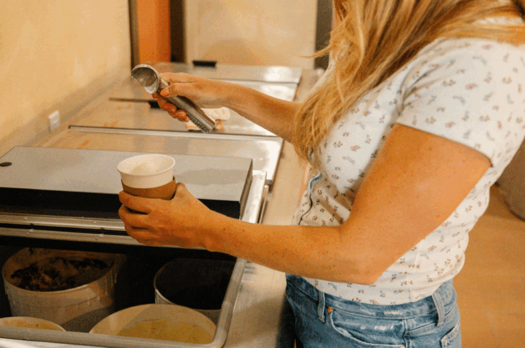 I get to work and take an inventory of what needs to be done for the day. I then make a list of all of my tasks. My days rotate between making ice cream, baking, and administrative days. If it’s a baking or ice cream making day, I spend 10–12 hours in the kitchen making all of the treats for Pink Coyote. I usually don’t take breaks and get in to a good rhythm of prep a recipe, make a recipe, clean up the mess, repeat. If it’s an administrative day I will take meetings, coach my awesome staff, plan events, test new recipes, and do shop yard work/deep cleaning.