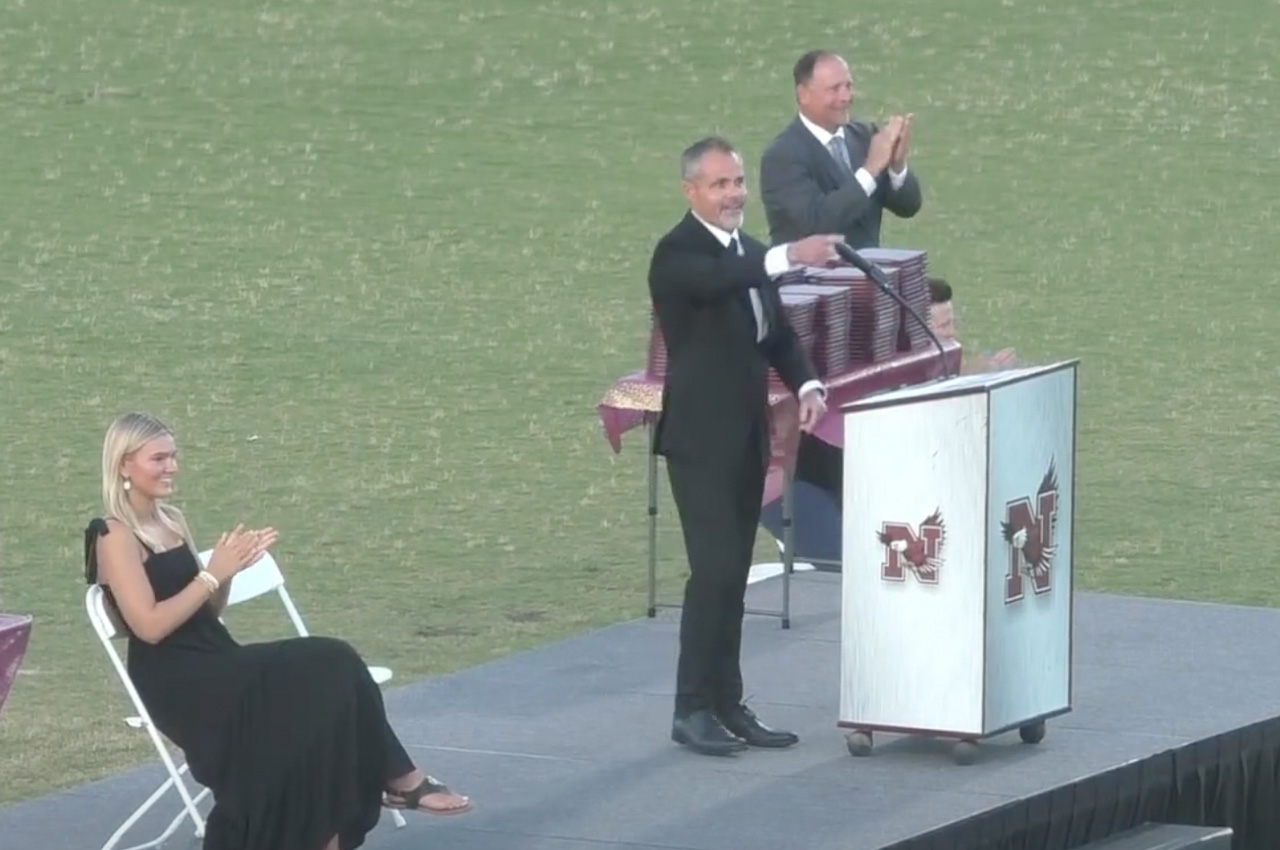 Principal Charlie Marello began Thursday night’s graduation ceremony by recognizing the entire softball team, specifically having the seniors stand and explaining to the crowd how they had flown home to participate in graduation.