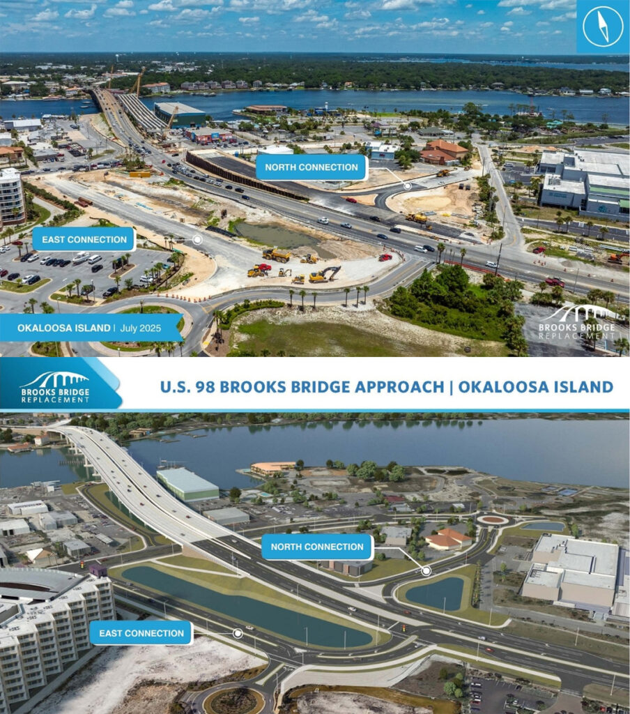 The second roadway, called “North Connection,” will feature a dedicated ramp to access the U.S. 98 westbound outside travel lane to Brooks Bridge. A dedicated right-turn lane from U.S. 98 westbound onto the North Connection will allow drivers to access Santa Rosa Boulevard north of U.S. 98.