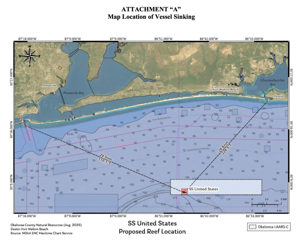 Okaloosa County Commissioners unanimously approved a $2.95 million contract amendment Tuesday to complete the remediation and deployment of the SS United States as the world’s largest artificial reef, with officials emphasizing that partner contributions totaling more than $4 million will offset the additional costs. No additional Okaloosa County funds proposed in this amendment.
