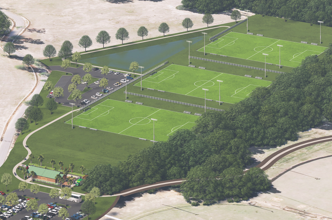 A concession stand, asphalt parking, a one-mile walking trail, a playground and additional lighting would come in later phases. Design work begins next, followed by bidding for construction.