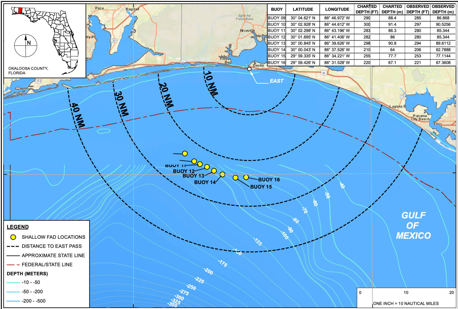 - The commissioners unanimously approved a $513,000 single source purchase order to Walter Marine LLC for the deployment of the eight FADs, which will be positioned approximately 25 nautical miles from Destin Pass in water depths ranging from 206 to 297 feet.