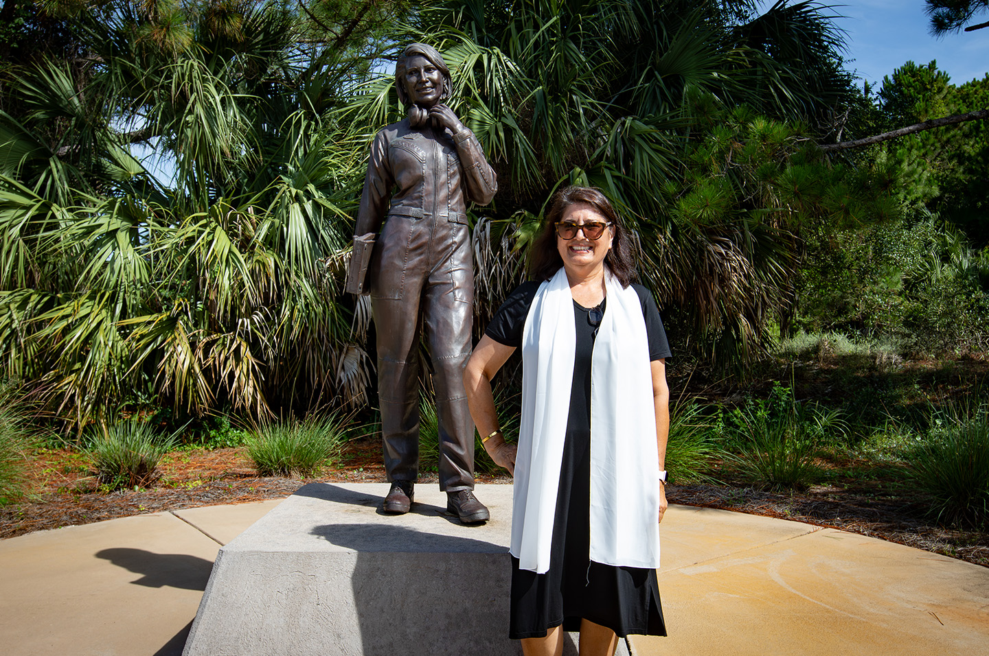 Naseema, one of the women honored with an existing statue in the park, attended the ceremony. On Sept. 11, 2001, she was the only Airman fluent in Pashto, the same language spoken by the insurgent group known as the Taliban. Naseema was immediately deployed as an Aircrew Linguist.