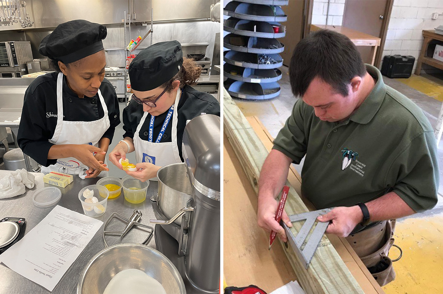Students spend time in specialized career instruction classes and then work in either the culinary lab or building trades lab to develop practical skills. They clock in and out each day like regular employees.