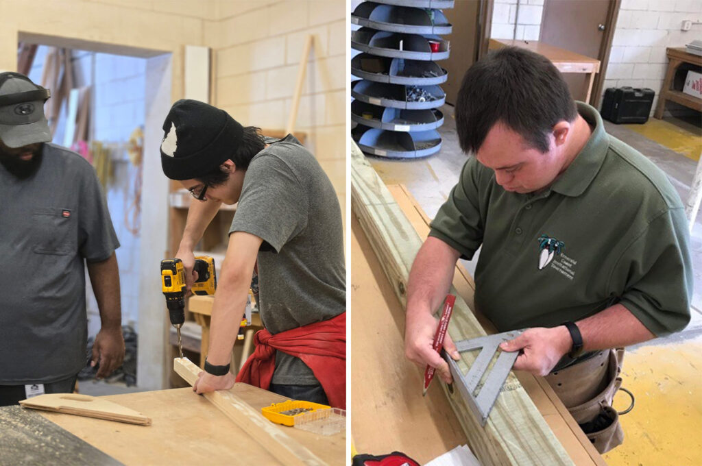 - On the building trades side, students work on construction teams building tiny homes, learning hands-on skills alongside traditional program students.