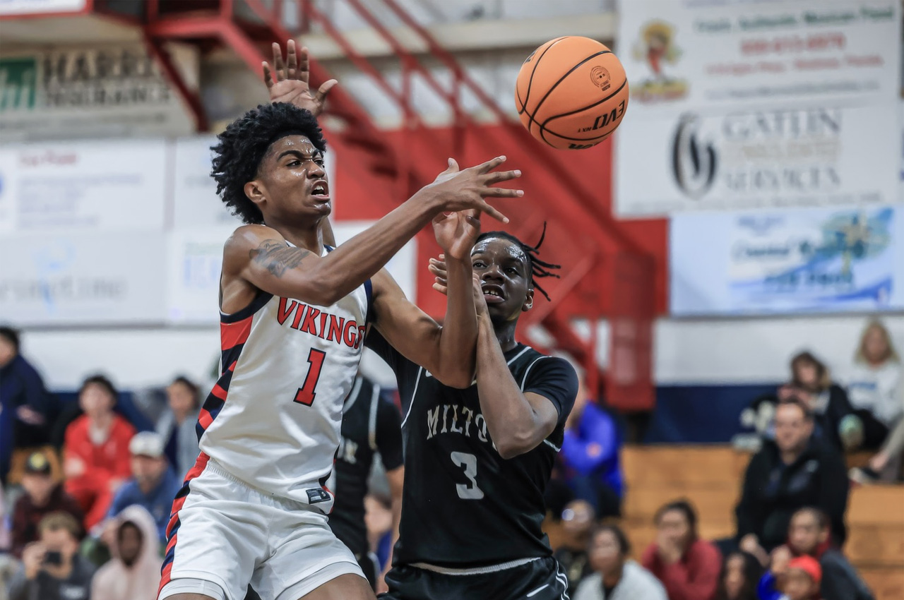 The game opened with a defensive first quarter, as both teams had opportunities offensively but missed most of them. The Vikings led 9-6 late in the quarter, but Milton forward Zhailyn Gaines hit a buzzer-beating 3-pointer to tie it at 9 entering the second.