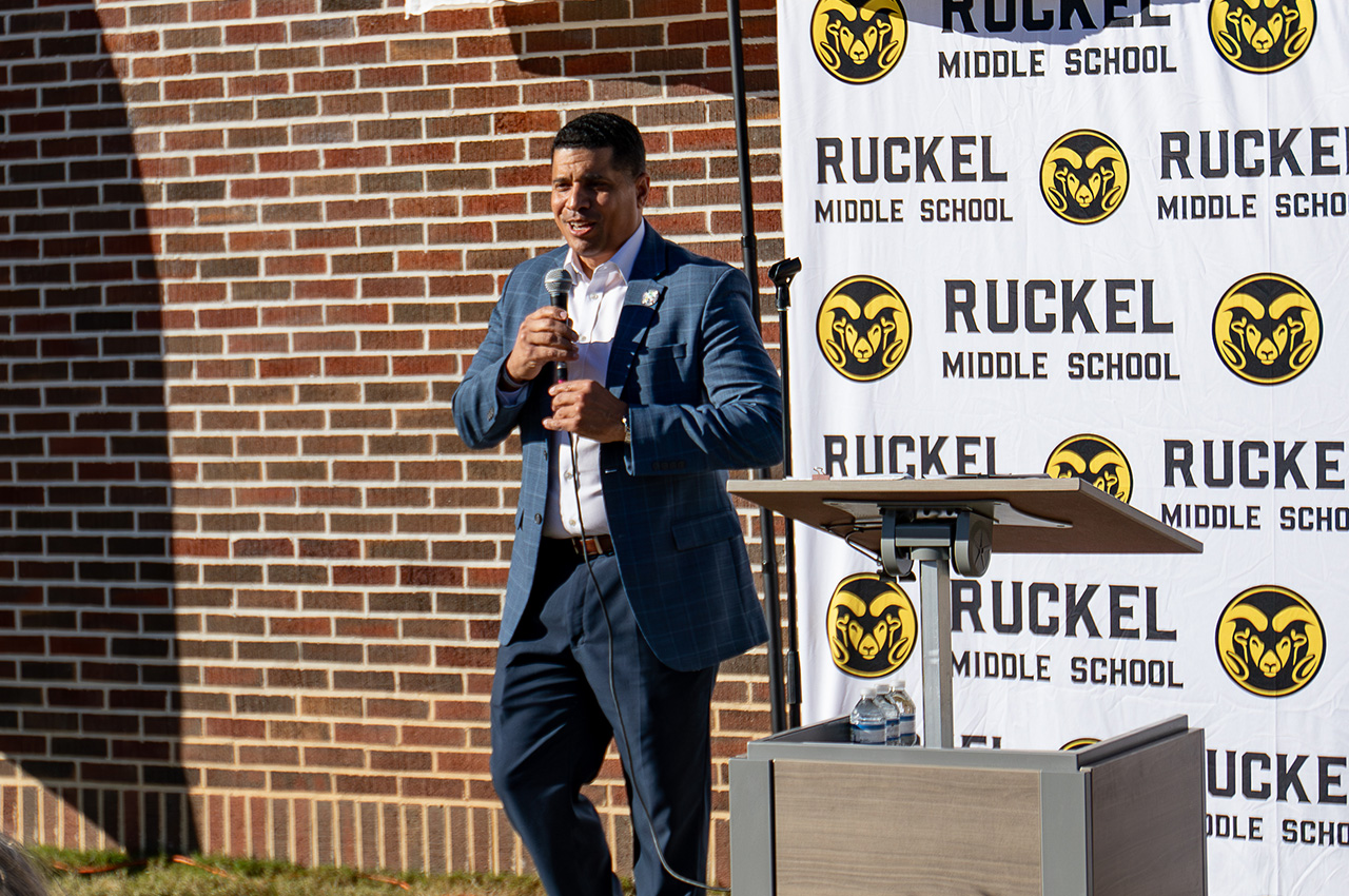 Ruckel Middle School held a ribbon-cutting ceremony Friday morning to officially dedicate its new cafetorium in honor of the beloved late principal whose decades of leadership left a lasting impact on the school and the Okaloosa County School District.