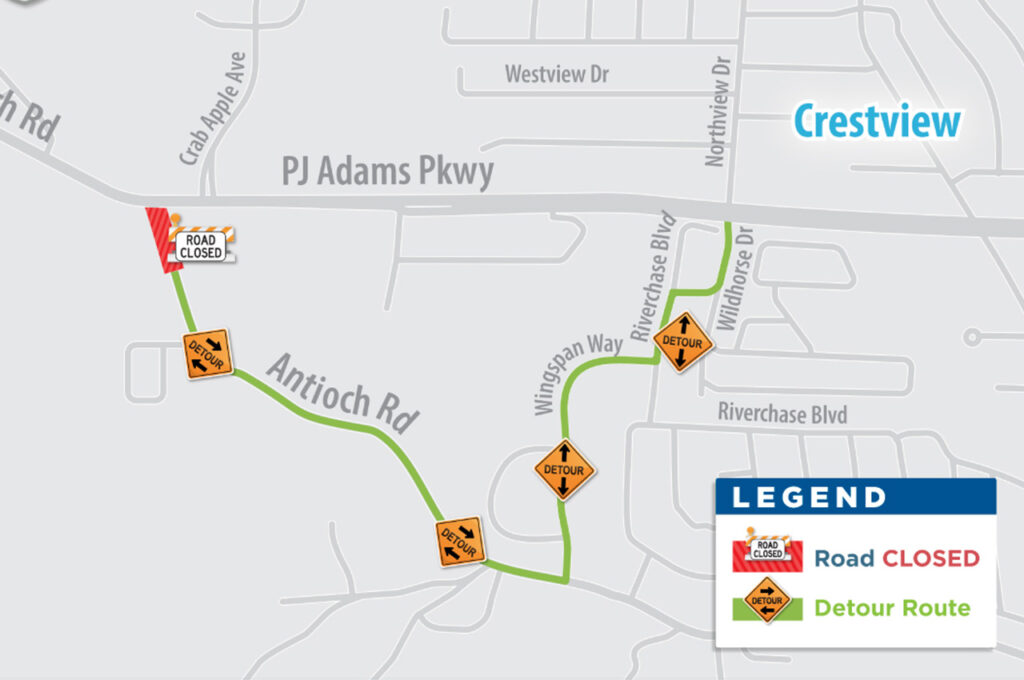 Temporary Antioch Road closure with detour begins March 16 in Crestview