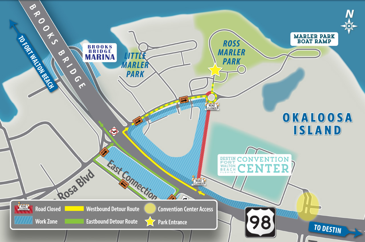 The temporary closure is required to construct the new Santa Rosa Boulevard alignment beneath the future Brooks Bridge. This temporary traffic pattern is expected to be in place until mid-2026, according to the Florida Department of Transportation.