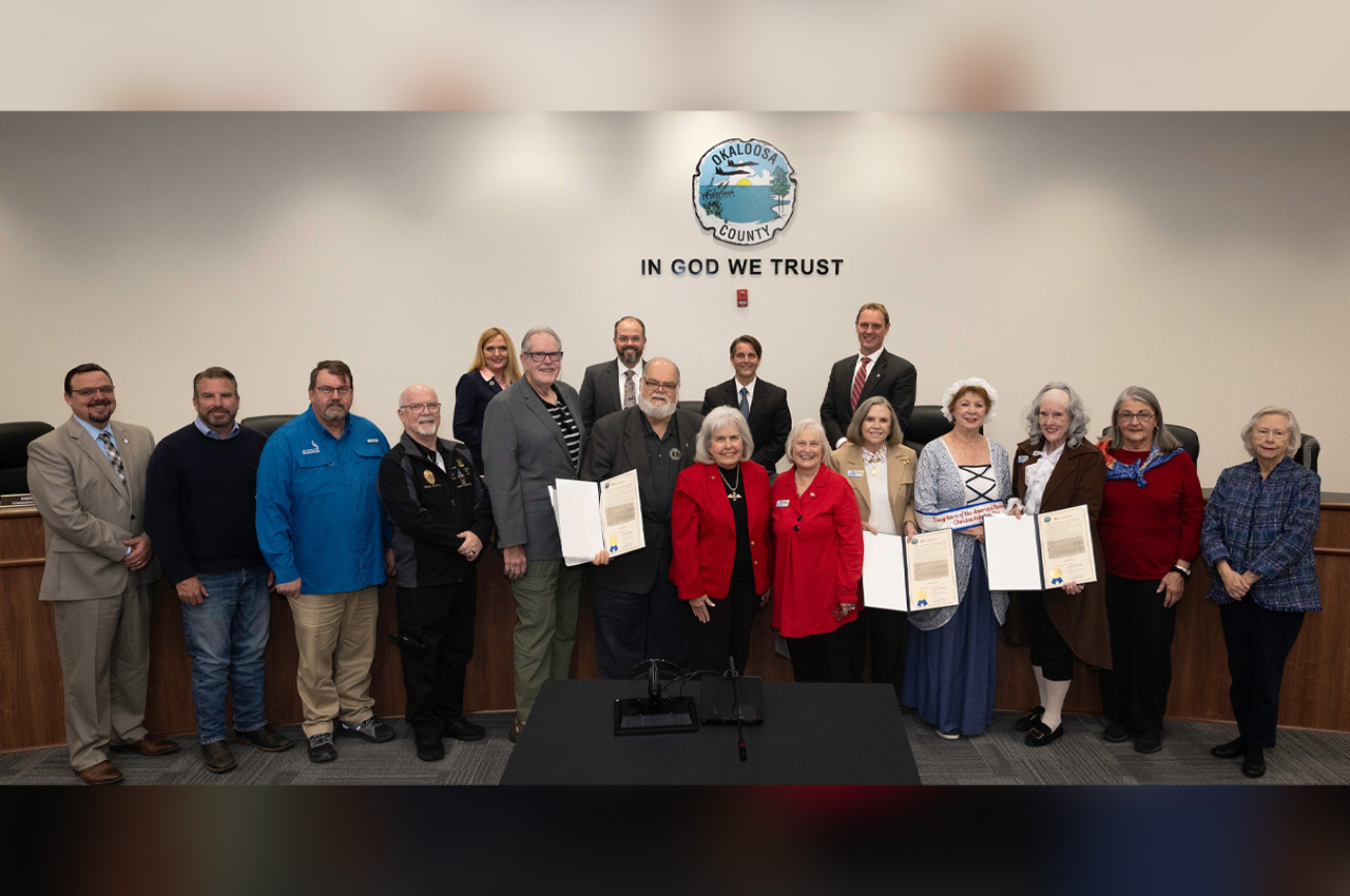 The Okaloosa Board of County Commissioners unanimously approved a proclamation Tuesday recognizing America250, the nationwide initiative commemorating the 250th anniversary of the signing of the Declaration of Independence.