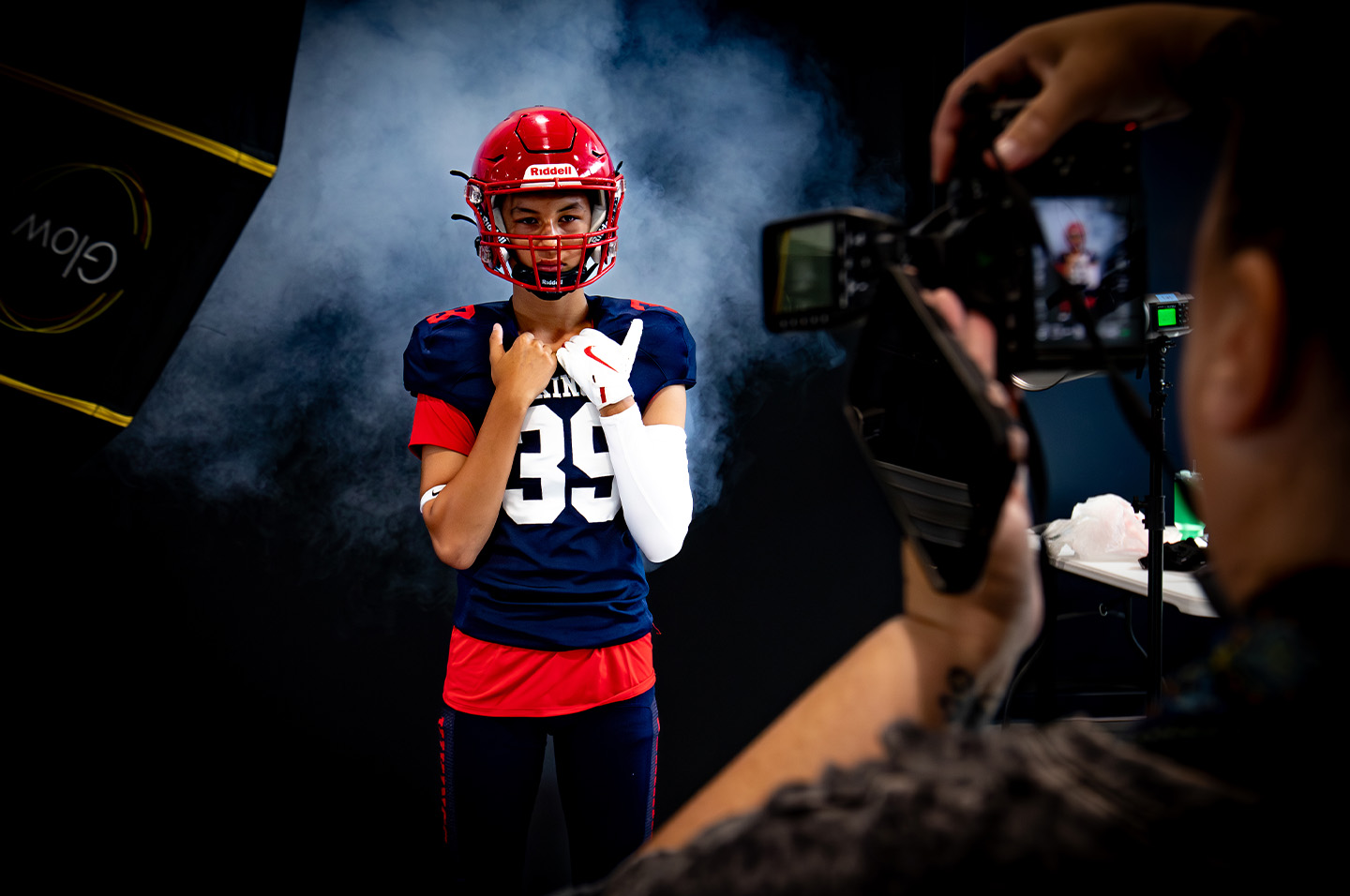 The scene last Thursday morning at Fort Walton Beach High School was not a typical high school media day. A Dodge Challenger, a pristine Porsche Carrera 911, and a fleet of trucks from Preston Hood Chevrolet served as backdrops for players posing in full uniform, while fog machines and lighting from Holly Howard Photography created an atmosphere that would make any teenager feel like a pro athlete.