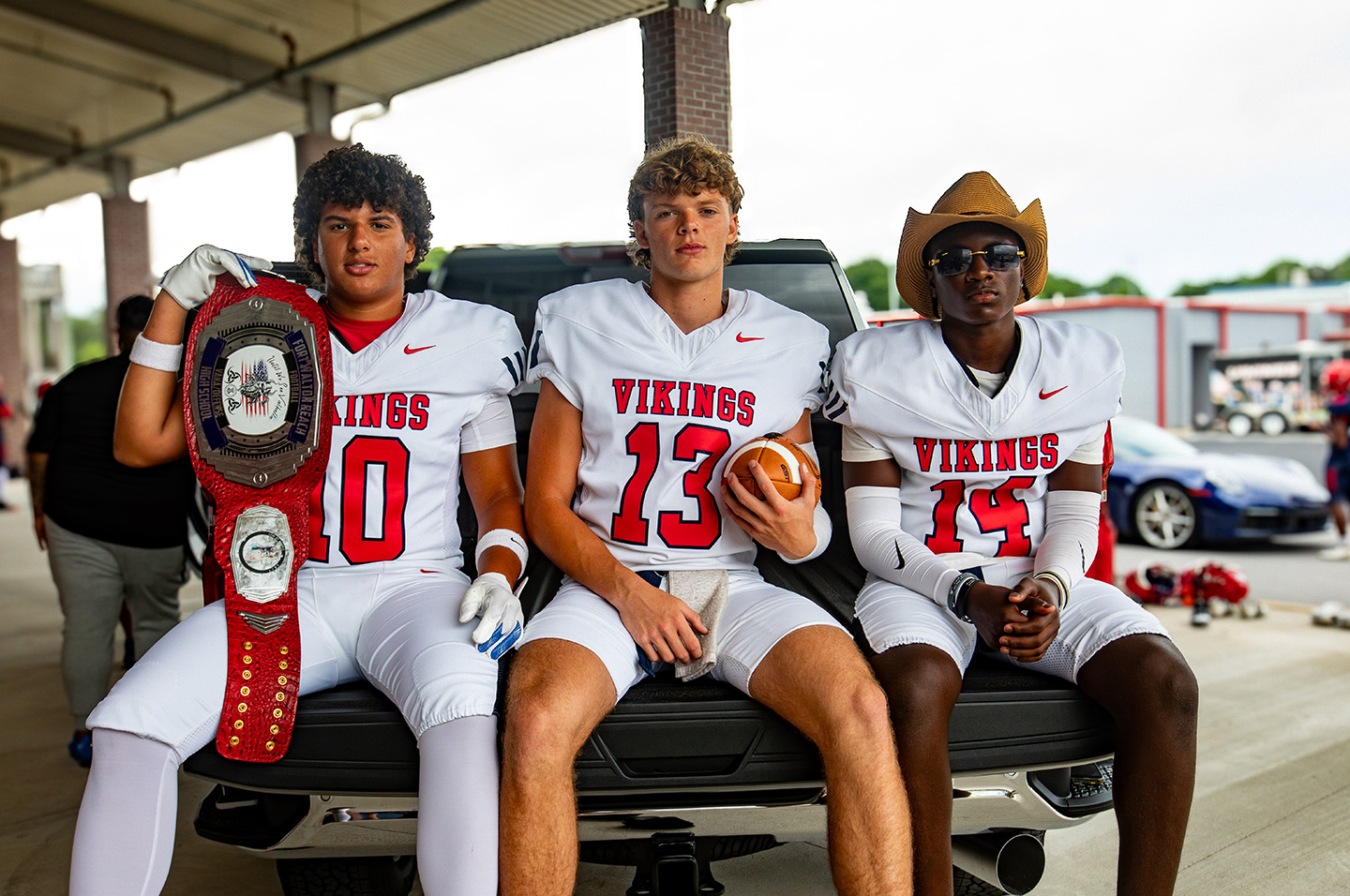 The support extends beyond the coaching staff into the community, where local businesses and leaders have rallied behind the program. Thursday’s media day highlights that support, with alumni Stewart Riggs providing the Porsche and Taylor Hood from Preston Hood Chevrolet bringing trucks for photo opportunities.